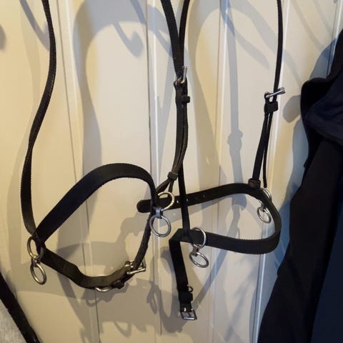 Hodelaget er veldig fint brukt nesten nytt men pannereimen er løsnet. Må evt limes eller byttes ut med ny.