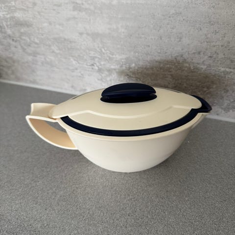 Jenaer Glas, Schott Mainz, borosilikatglass, Quist Hermanns, bølgete metallholder, mid-century, mid-century modern, tysk design, kaffe, te, retro, vintage, samlerobjekt, borddekor, kjøkkenutstyr, varmebestandig, elegant, interiør, funksjonell, designklassiker