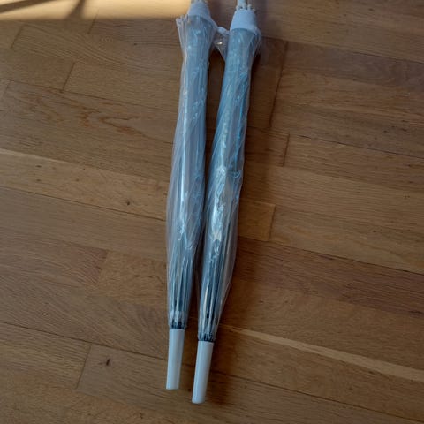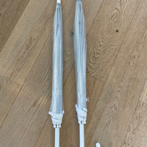 Gjennomsiktig paraplyer. Perfekte til bryllup eller andre arrangementer utendørs.