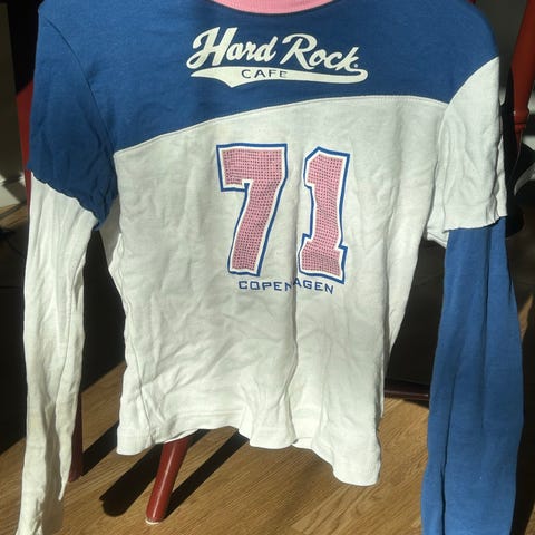 Supportergenser kjøpt i New York. Den ser ganske brukt ut, men det er sånn designet er. Str. S.