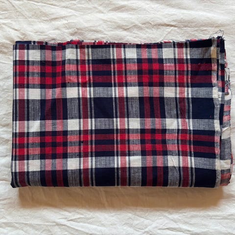 Rutete stoff selges. Noe bruksmerker kan forekomme. Selges som det er. Se bilder.