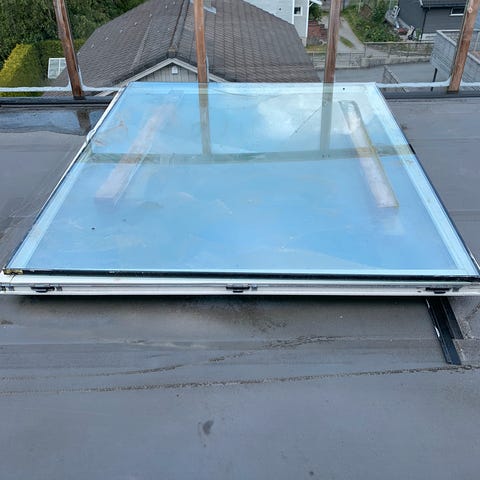 Har vinduer i flere størrelser som gis bort. Vinduene står innpakket i presenning og er pr. nå ikke så tilgjengelig for måling. Var planer om drivhus. Bilde for oppmerksomhet og ikke lik de som gis bort.