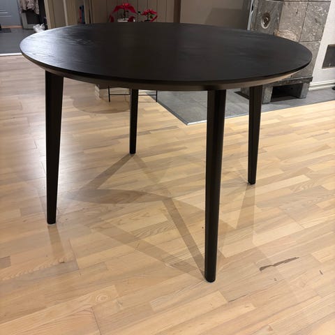 Rundt spisebord fra IKEA i mørk grå med sorte ben. Passer til bruk i spisestue eller kjøkken. Diameter på bordet er 105 cm og høyden er 75 cm.