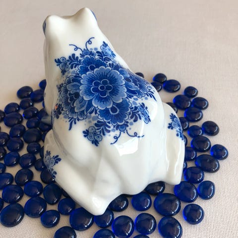 Flott elefant figur i hvit sten med innlagt lapis og perlemor i blomster motiv. Stabelen vender opp som referer til hell og lykke. Høyde ca 7,5 cm. Alle stener er påplass.