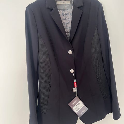 EGO7 dame ridejakke i størrelse IT 36. Jakken er svart med lyse detaljer på krage og lommer.