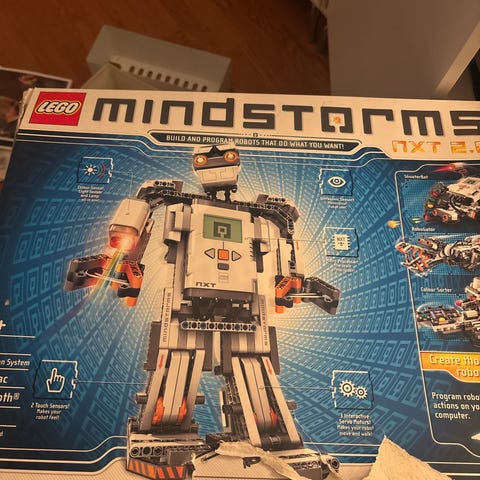 Lego Mindstorms NXT2 (31313) selges billig, fordi vi ikke vet om alle brikkene er med. "Hjernen" er der og alle "robotdelene" er såvidt vi kan se med.