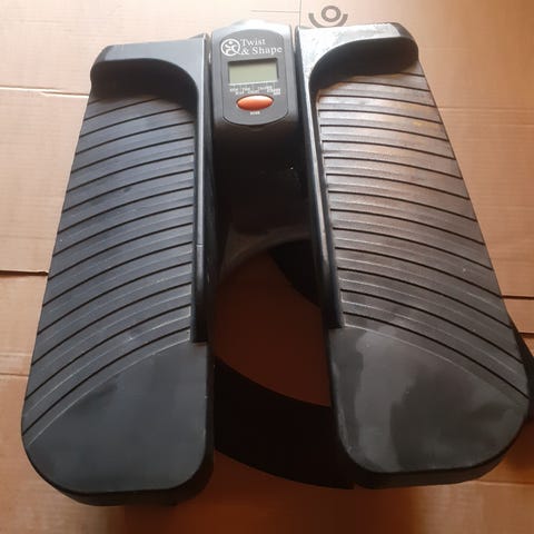 StairMaster trinntrener med svarte gummipedaler. Designet for å simulere trappeklatring som en treningsøvelse. Pedalene har en teksturert overflate for bedre grep under bruk.
