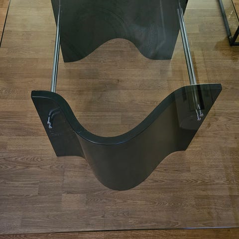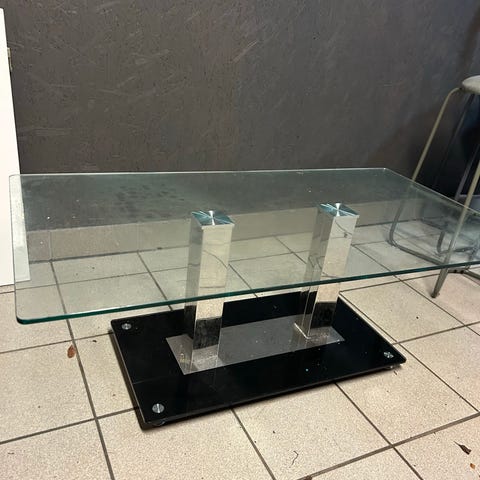 Flott bord med glassplate selges for 600,-. Bordet er tungt. Hentes i Elverum.