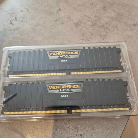 Corsair Vengeance LPX DDR4 RAM, pakke med to moduler på 8GB hver, totalt 16GB. 3000 mhz selges samlet