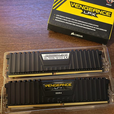 Corsair Vengeance LPX DDR4 RAM, pakke med to moduler på 8GB hver, totalt 16GB. 3000 mhz selges samlet