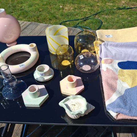 Lene Bjerre- blomsterpotter med tilhørende fat.