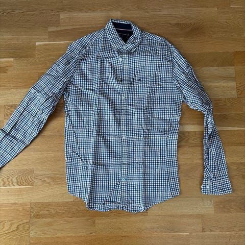 Flott Reserved Slim Fit skjorte i størrelse 44 for menn. Skjorten har et blått rutemønster og er laget av 100 % bomull. Den har en hvit krage og er designet med knappelukking foran. Ubrukt.