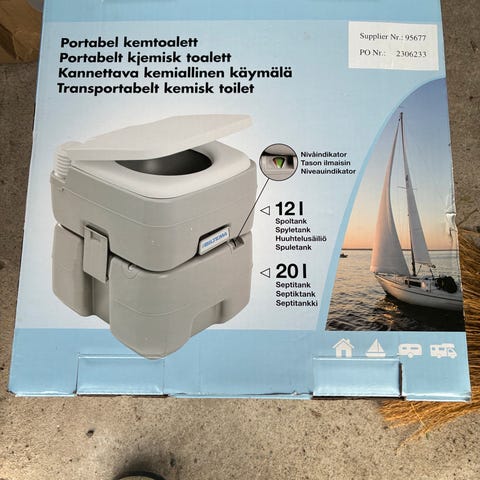 Separett bærbar kjemisk toalett med kapasitet på 12 liter for ferskvann og 20 liter for avfall. Toalettet er designet for enkel transport og bruk, egnet for camping, båter eller andre steder uten fast sanitærtilkobling. Produktet leveres i original emballasje med nødvendige tilbehør. Pris 500 kr. Må hentes. Ønsker seriøse henvendelser..