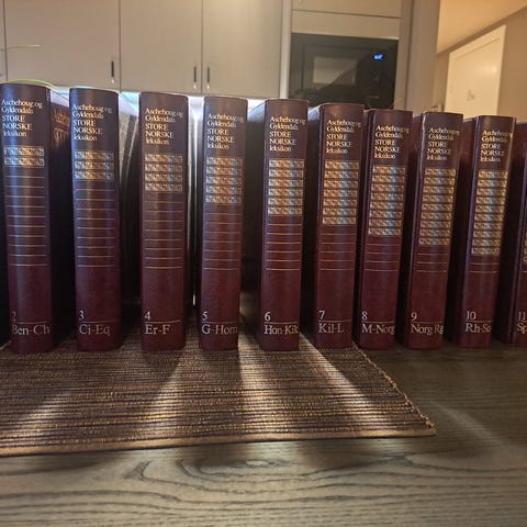 Fremstår nærmest som ulest. Har reparert/forsterket litt på omslag med bibliotek-tape.