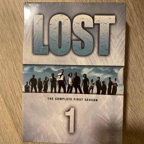 LOST The Complete First Season DVD box set. Innholder alle episoder fra første sesong. DVD-format, engelsk språk. Passer for samlere og fans av serien.