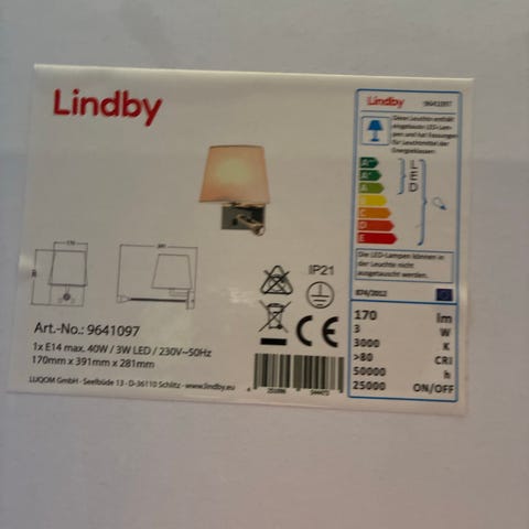 Uåpnet vegglampe, 2XE27 lyskilder, se lenken under for flere detaljer: