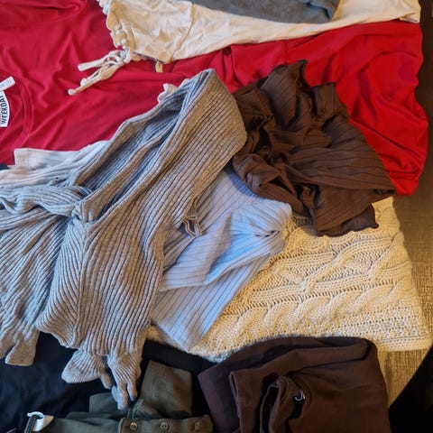 Topper og gensere i strl xs, s og m selges.