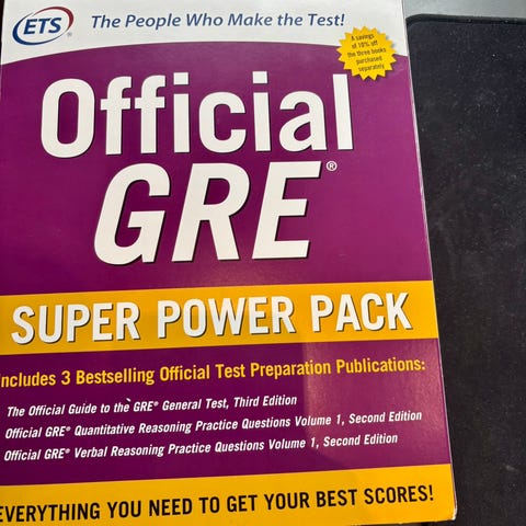 ETS The Official Guide to the GRE Revised General Test. Inkluderer 4 praksistester, detaljerte forklaringer, strategier for prøven og en PowerPrep II CD med simulert databasert test. Boken er designet for personer som forbereder seg til GRE General Test, og dekker alle deler av testen med praktiske eksempler og øvelser.