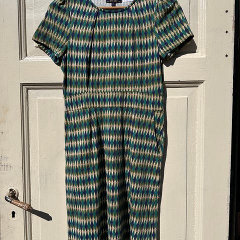 Dette er en King Louie med et retro-inspirert bølgemønster i marineblått, oransje og kremfarger.