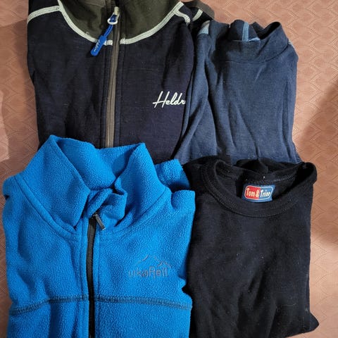 Et fleecesett str 7-8 år, litt tykkere fleecejakke str.7 år, janus ullbukse str.130 7-8 år. Selges samlet for 200,-