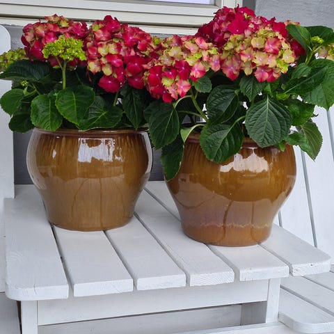 Selger to utepotter kjøpt hos en lokal plantegård. Fine, men trenger en skrubb. Er kommet litt grønske på de.🪴