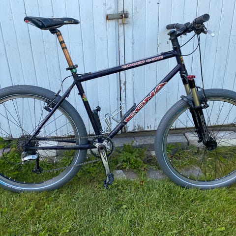 Kul bysykkel med singlespeed/fixie. Hjulet kan snus for ønsket effekt. Er veldig lite brukt, var opprinnelige blå når jeg fikk den men har endret farge til lilla i sola. Dette er en jålesykkel, egner seg ikke som langdistansemaskin men du finner ikke mange eksempler av denne hvis du vil ha noe unikt å sykle rundt med. Ramma er av stål, hjulene er hvite. Vanlige felg brems. Ville kanskje vurdert å bytte til bedre bremser/skru litt på de hvis du vil ha bedre bremser. Alt funker som det skal. Ringeklokke i messing og settedekker som henger under setet. Kjøpt fra f5 concept store for noen år siden.
