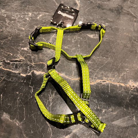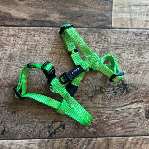 Hunden vår fikk ikke brukt denne selen da han vokste fort forbi den og brukte sele han fikk med fra kennel i ca lik størrelse. Har justerbare sele rundt hals og kropp, to fester på rygg. Lett og enkel å ta på.