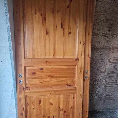 Helt nytt dørblad med glass fra XL-bygg selges rimelig da den har en skade oppe i hjørnet, se bilde. Størrelse 70x210. Nypris er 4700kr.