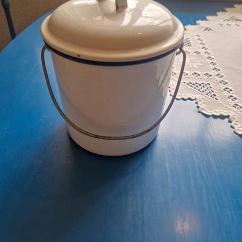 Selger et lite ca 24 cm høyt melkespann, kunn stått til pynt. Pris 400 kr. Må hentes. Ønsker seriøse henvendelser..