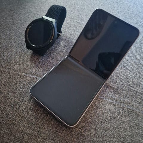 Pent brukt Samsung Galaxy Z Flip 6 mobiltelefon med 512 GB lagringskapasitet. Det er ingen kjente feil på den og den er tatt godt vare på voksen person. Har hatt deksel på den siden den var ny. Har riper på foran skjermen. Selger med Galaxy Buds3 pro og Galaxy Watch 7. selger alt sammen som i bilder. Har kvittering. Kjøpte i fjor