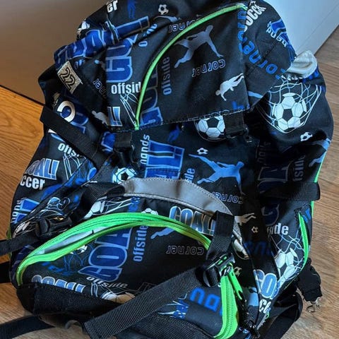 Ryggsekk i fin stand selges og har flere praktiske lommer.