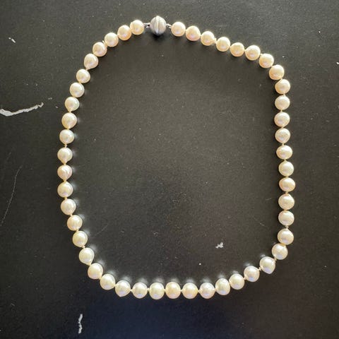 Vakkert perlekjede med ekte kulturperler og lås i 14 karat gull (stemplet 585). Kjedet er et arvestykke og har ligget ubrukt i mange år, men fortjener å bli brukt og satt pris på.