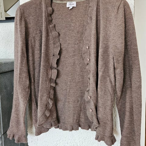 Kjempedeilig jakke av ull og cashmere i en kjempefin farge. Absolutt ingen stikking eller kløing. Veldig myk. Litt brukt men ser helt ny ut. Nupper ingen ting, så superbra kvalitet. Passer fint til hele året. Størrelsen er L/XL. Ikke oversize. Passer best L. Kjøpt på Nordstrøm i Chicago. Den er veldig fin oransje. Om den ser falmet ut på bilde så er den ikke det. Bare litt rart lys.