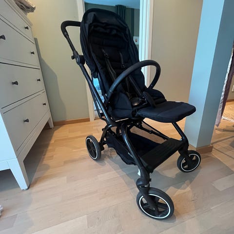 Super vogn som bl.a. reisetrille i storby og trange steder. Den kan snus begge veier, det er enkelt å snu den. Den tar også lite plass sammenslått og er enkel å både slå sammen og ta opp igjen.
