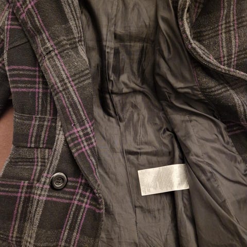 Mørkeblå jakke i ullblanding fra Topshop. I finfin stand. Str 38. Hette, foret, fine utenpå-lommer.
