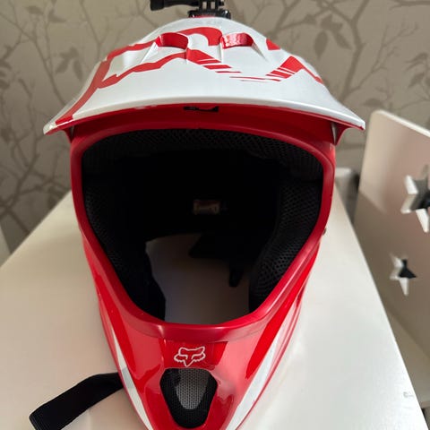 Selger en kul mtb hjelm. Modellen er Fox dropframe pro i strl M. Pent brukt. Foretrekker min andre hjelm (giro switchblade med hakke beskyttelse) så den er ikke mye brukt.