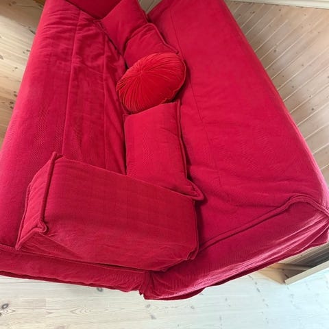 Sovesofaen har en ripe under den ene seteputen, men ripen har ingen synlig eller funksjonell påvirkning.