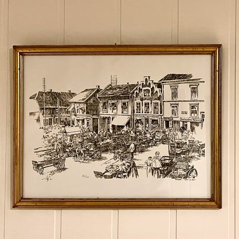 Bildet av Horten torg av Asbjørn Svendsen. Det ble laget 400 eks, dette er nummeret som nr 12. Må hentes