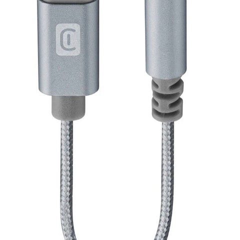Apple Lightning til 3,5 mm lydkabel med en lengde på 1,2 meter. Kabelen har en Lightning-kontakt i den ene enden og en 3,5 mm lydkontakt i den andre.