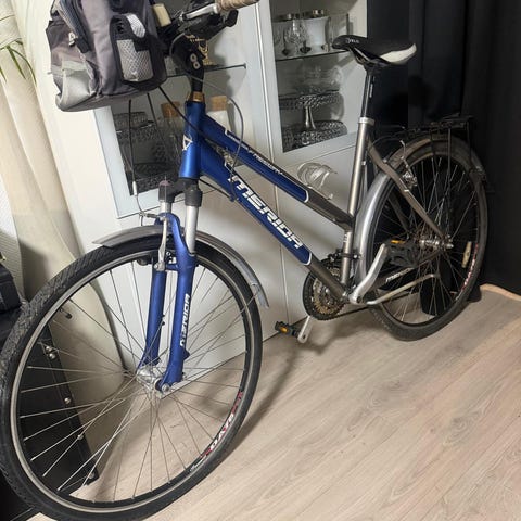 Lite brukt dame sykkel selges for at den ikke blir brukt. 21 gir. Brukt til vanlige sykkelturen, ingen terreng kjøring. Justbare dempere foran. Vært i en liten service i sommer 2025.