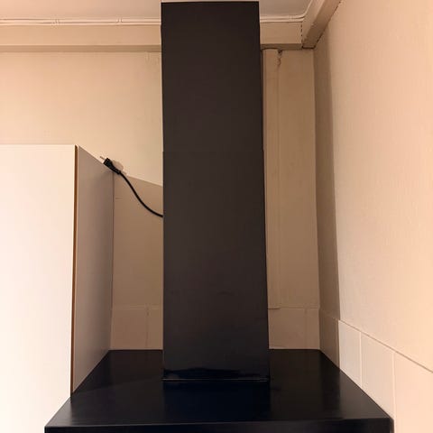 For at ikke andre skal gjøre samme feilen som meg så bør det være minst 220 cm høyt fra gulv til tak, dersom luften skal ut og 230 dersom luften skal resiruleres og ikke noe utløp. Vårt er bare 2,04 m fra gulv til tak (og ikke 2,4 slik jeg forstod min kone😇). Viften er flexibel og kan "strekkes" henholdsvi 45 og 35 cm dersom taket er høyere i tillegg til at den kan henges høyere over steplatene også dersom det er veldig høyt under taket.