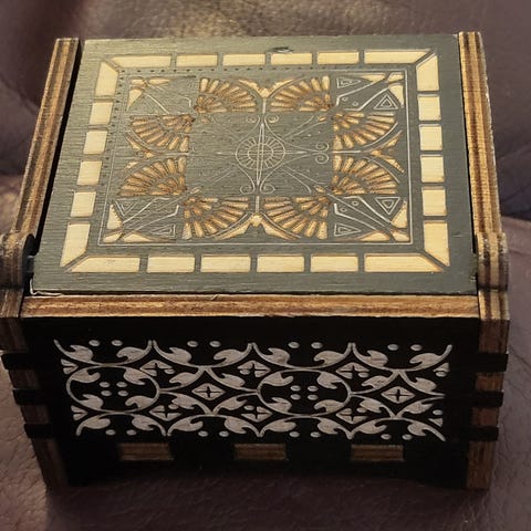 Flott eldre smykkeskin /boks-flott stand og kvalitet.8 kantet og flott dekorert/inlay/mulig perlemor.filt inni.Har arvet denne,så litt usikker på alder/land ol.Flott er den-bud