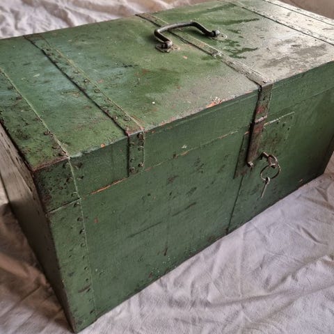 Gammel kiste med ukjent opphav selges.