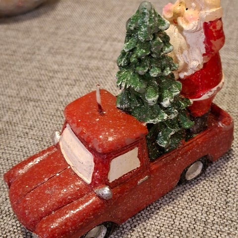 Såå fin Juledekorasjon med lastebil, juletre og hunder.