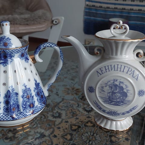 Gsjel vase H 18 cm, pris 250 kr, Lomonosov tekopp, pris 150 kr + porto. Alt er helt og fint.