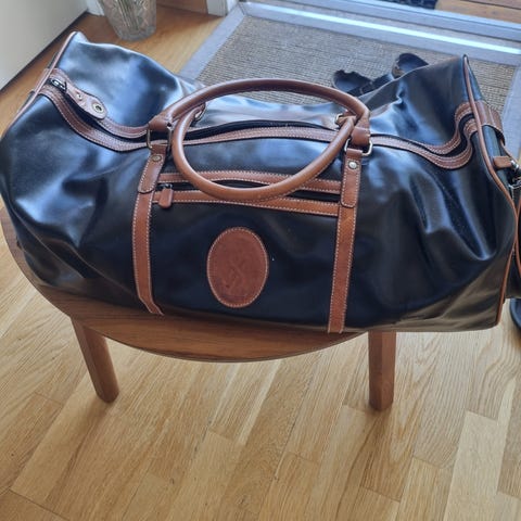 Gucci weekendbag i lær, designet for unisex bruk. Baggen er mørkeblå og er laget av høykvalitets lærmateriale. Den har et romslig hovedrom med glidelås og lommer, med bærehåndtak for enkel bruk. Passer til reise og hverdagsbruk.