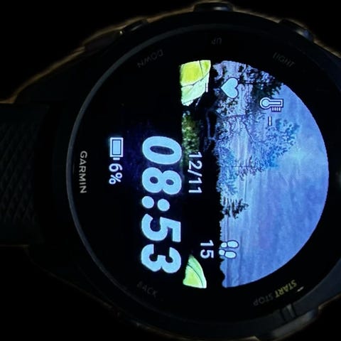 Klokken har en rund skjerm og pulsmåler på baksiden. Designet for trening og daglig bruk med fokus på løping og aktivitetssporing. Ladeledning følger med. Selges fordi jeg har 2 klokker😅