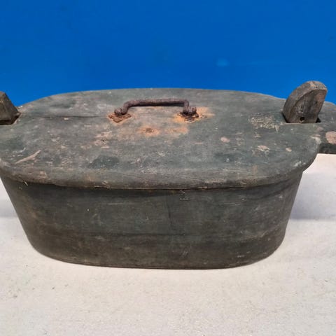 Usikkert årstall. Fra Gudbrandsdalen . Bunn er festet med trenagler, disse må gås over om den skal brukes til noe annet enn pynt