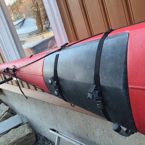 Brukt kajakkstativ til bil med festeordning som passer til de fleste takstativ. Litt rust på enkelte skruer. Stativet holder ellers kjøkken godt på plass under kjøring.