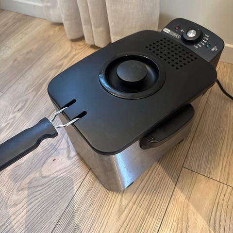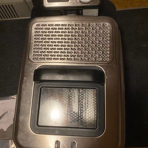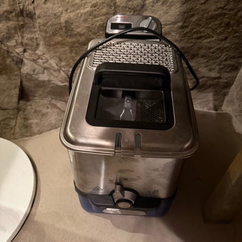 Kapasitet på 3 liter. Laget av rustfritt stål og svart plast. Utstyrt med avtakbar kurv med håndtak, temperaturkontroll og avtakbar beholder for enkel rengjøring. Lite brukt.